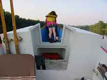 down any junk in the cuddy, or remove it to the cockpit and strap