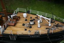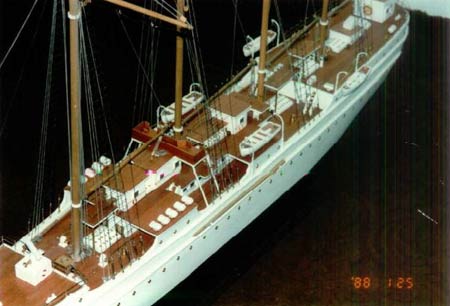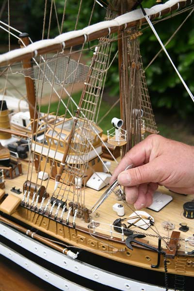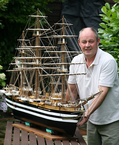 Richard Hughes is an Englishman who has been ship modeling since 1990 and who has become noted for his wonderful mainly display museum-quality models such as the Italian Navy’s Amerigo Vespucci sailing ship used for training purposes seen above and again below, and Scott’s ship RMS Discovery among others scratchbuilt. They are highly detailed and built to a length of 180cms or just under 6’. Some of his models commissioned, others snapped up by purchasers. Richard also restores old pond boats and modern sailing yacht models for people including A Class yachts, has also built a 30” model of the impressive Spanish sailing ship Juan Sebastian de Elcano (below) and his website www.tallshipmodels.co.uk shows a varied array of work carried out over the years.