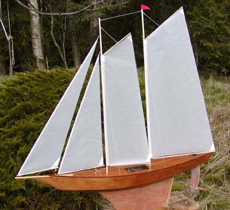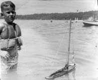 Model yacht toys, later taken over by the Keystone Company, a manufacturer of a range of quality toys in the Boston, Massachusetts area. Around 1957/58 when 5 or 6 years old, Will is shown above sailing the same model in a lake. Will’s model is probably from the 1929-1933 period. If you Google `Joacrim Mfg Co website’ you will find it interesting. Schooner fan that the writer is, he doesn’t half fancy the Seaworthy, the 23” rare Seaworthy Schooner shown in that website that they produced in 1930.