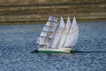 The schooner fan that I am, I got to pondering just how small (length on deck) anyone could build a tiny model schooner, fit micro RC gear and sail it… just how tiny a schooner could it be? And the challenge is now on (with an additional class for a freesail model as well) and almost five months in which to create what would be the smallest RC model schooner on this planet of ours. Entries will close on 15th November with an entry form which I will email to you if you email me requesting it to windlingworld@xtra.co.nz