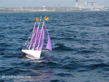 Siobhan loved yachts and her Uncle, Gordon Morrison built a 4’ model four masted schooner which he named Siobhan to sail across the North Sea to Denmarkin honour of his niece and which he launched at Boddam on 24th August 2007.