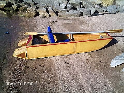 designed and built a double paddle to be used with the boat, and the plans are offered free to those that need