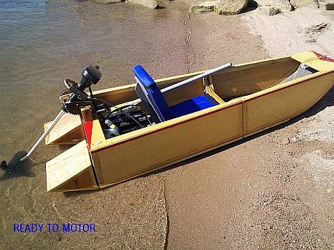 It was designed as a paddle boat, and as a trolling motor powered transportable. My guess is most builders will