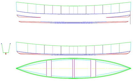 So I drew up a simple hull shape that is really a slightly more numbers focussed version of a flat bottomed canoe - but then added the fins at the front and back to duplicate the Wee Lassie's directional stability. The base dimensions of beam and length and even some aspects of the Sheer Line and Widths were taken from my more conventional Eureka Canoes.