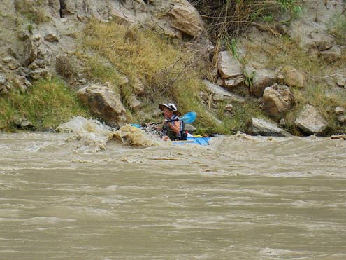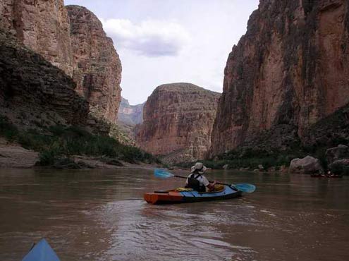We took them to the real Rio Grande a couple of months ago for a trip down Boquillas Canyon with Louis Aulbach and some other folks from the Houston Canoe Club. The river was high—Mexican authorities were releasing water from dams in anticipation of heavy rain from a Pacific hurricane. As a result, we mostly rode over the tops of any rocks.