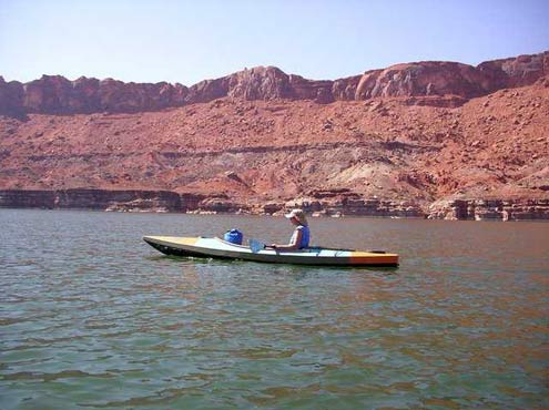 “Back paddle”, says Chuck, and I am learning to do that, but sometimes you just can’t avoid every rock. We concluded that I needed a bulletproof boat. I love the Toto design, but the open center meant that even if I avoided the rocks, it would sometimes swamp in standing waves. We build a couple of Imresboats (long and sleek), and they are perfect for Lake Powell, but not as manuverable in a fast river. We asked Jim Michalak to design a Toto length kayak like the Imresboat, and he sent us the Rio Grande.