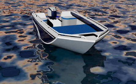 Running through HullSpeed (a part of our Maxsurf ship modeling program suite), the result is a light hull built in our standard material epoxy-glass-plywood composite construction. The deadrise is 31 degrees at the cutwater, about 10 midship and 8 degrees at the transom, the Roguewave XT-15 has enough vee to handle choppy seas without problems and her wide beam produces great stability and lift for planing at low speeds.