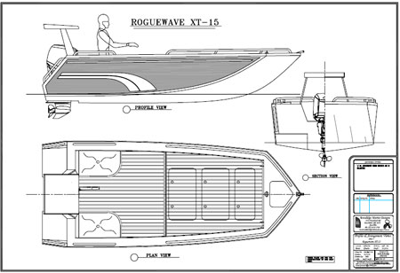 Plans for the Roguewave XT-15 are extremely comprehensive, with 8 sheets (D size or 2ft by 3ft) of drawings, complete written specifications and builders manual. Back up service is also provided as needed. Please read our Back Up Policy. This is an ideal project for the first time boat builder.