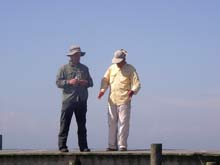 The wind was blowing and rain was spitting – the first tropical depression of the year was threatening to form just off shore – so after the Captain's Meeting, we adjourned to an excellent meal of barbecued ribs (buccaneer style) at the Driftwood Inn and retired to our camps. After dark, the last member of our expedition pulled in, Pete Lamarche from Kingsville, Ontario. This plucky Canadian had a very well appointed production boat rarely seen in the US, a Nordica 16 named Jester. Pete had run into a bit of bad luck as he had no charts. He had been expecting to navigate with his brand new, US purchased GPS, but the GPS had to be initialized while connected the internet, and there was no internet capability at Cedar Island. Bill, the senior Moffett, proffered a slightly-less-than-adequate-but-better-than-nothing sport fisherman map produced by the North Carolina tourism board, which Pete gladly accepted.