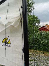 the reefed sail in action, with a line through grommets in the