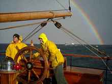 of heavy bolted canvas for riding out storm conditions. Captain