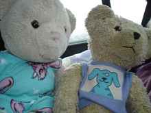 The 6 hour trip from Christchurch to Abel Tasman National Park was cold and wet and we didn't enjoy it much. All our owners could do was take photos of us in the back seat of the car. The windows leaked on the driver's side so we didn't like sitting there. The blankets helped a lot.
