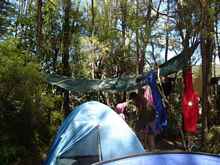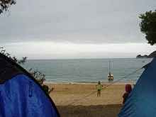 The Dad had heard of a cool anchoring scheme that in theory means you should never get wet. He tried it out for the first time at Torrent Bay and it worked quite well, especially on a small light boat like Philsboat. We stayed in tents on shore, because there was no way six of us (Mum, Dad, two kids and two teddys) plus four days of supplies could all sleep on a little 14' 5” boat.