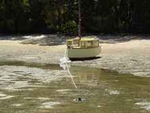 The next day we started early to catch the morning tide. My owner's Dad was concerned that we would arrive too late and miss the tide. We didn't care and we were right. There was lots of water to float our little craft and somebody who owned a Stevenson Weekender gave us a hand taking the car to the secure lockup.