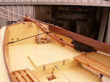 mount cut out in it. The tiller to rudder head connection is Oughtred.
