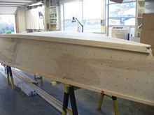 I had made a template for the rudder and leeboard foils using the Michael Storer foil shape from my OZ-PDR plans. Shaping the foils on the large leeboard took about an hour per side using a power plane and belt sander The rudder took a lot less time.