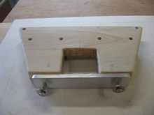 Now I took the two halves apart. Half of the hole was in the top half and half was in the bottom half. I determined where I wanted the nuts and with a l/4 inch chisel carved out a pocket for the nuts in both top and bottom halves. The parts were then epoxyed and screwed back together with the nuts and bolts in place. Before the epoxy cured I removed the bolts and left the nuts glued in place.