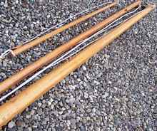 All of my research for boat construction was done on the web – I probably would have saved a lot of time if I had purchased a book. During my research I was unable to find a technique to turn the spars which I thought wasn’t beyond my skill level, so I used my wood working experience to design my own method. I didn’t have to invent anything new because wood workers use a simple jig to turn table legs and dowels, I just enlarged it. Please excuse the photo of the jig; since it was built I have shortened it to eight feet and it shows a couple years of abuse. My jig was constructed from ¾ plywood, was about 16 feet long (long enough for the longest spar) and approximately 8 inches wide and 8 inches deep. At one end there is a pointed bolt with two nuts and washers, the other end is solid. There is another piece of plywood fitted with an identical bolt inside the jig that is moveable to properly position any length of spar. After the moveable piece of plywood is in position it is clamped to the sides of the jig. The bolt holes in the plywood are elongated a couple of inches so the bolts can be adjusted vertically to accommodate the thickness of the blank and also to make an adjustment for the spars taper. What I ended up with was a hand powered lathe where a router is used to remove stock instead of a chisel. The most important consideration for this jig was the top of the open box, it had to be perfectly flat and level; otherwise it would be reflected in the straightness of the spars. I used a one inch straight bit and left the router table base plate on the router. It served to guide the router along the jig .To use the jig the spar blank is positioned between the two pointed bolts. My preferred method of operation was to remove stock by running the router down the length of the jig, then turn the stock slightly and repeat the procedure. I discovered the longer spars bent slightly due to their own weight so I just shimmed up the center of the spar with the necessary thicknesses of scrap wood and sheet metal. The spars were turned exactly to the specified taper, but the main advantages were quality and speed; the main mast only took a few hours to turn and was perfectly round. To sand the spars I left them in the jig and used a finish sander locked in the on position and ran it up and down the spar while turning it slowly.