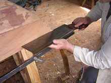 Spoke shave, plane, adze, axe, etc. Replace the batten to see