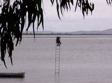 While we are on professional fisherman, this photo was taken at Iluka, NSW. It's not faked. He was up on that ladder looking for fish. The picture doesn't show it was blowing 40 knots with rain showers.