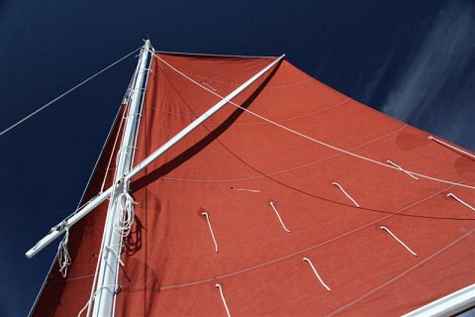 fast, sails very flat, hardly heeled at all. Never had any sails