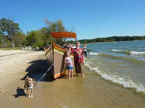 a 20 ft. 3in. long live-aboard pedal boat built to solve the problem