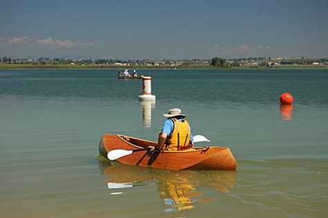 cedar strips under 6 oz. glass/epoxy. The project took two and