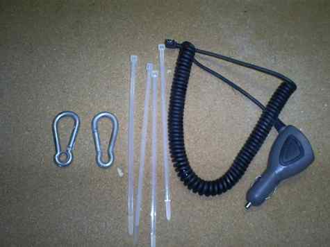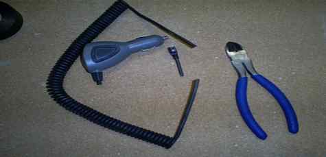 First things first.. We need to gather a few things. A pair of wire cutters, a roll of electrical tape some zip ties, a couple of snap clips and an old phone charger.