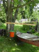 Two ways of answering this question occurred to me, a homemade scales or drive it to the Hartford Recycling Center fifteen miles away and talk the attendant into weighing Flytte with and without the canoe. Homemade scales seemed easier.