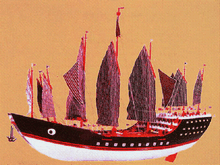 Model of the flagship of Zheng He based on an excavation in 1957 from Longjiang shipyard, Nanjing, Jiangsu. |