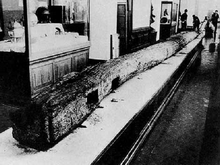 The huge Chinese junks, at the recorded sizes, would have been the largest wooden vessels ever constructed in the world. Were they this large? In 1962, the rudderpost of a ship was excavated in the ruins of one of the Ming Dynasty boatyards in Nanjing. This timber was 36 feet long. Reverse engineering using proportions typical of a traditional junk indicates a hull length of around 500 feet.