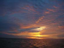 A spectacular sunrise over the Everglades marks the end of a night under sail. |