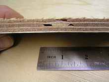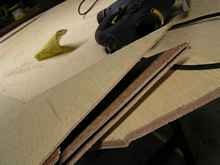 Even with the assurance of standards we all get caught out now and again, so if the wood you buy turns out to be expensive firewood don’t whatever you do use it on the boat you intend to spend the next three years building. For the skin of my build I decided to use BS1088 Gaboon ply at a cost of £68 per sheet for 1/2”. Rather expensive but having tried the alternative and had it fall apart as I was cutting it makes it difficult to trust just the BS1088 standards mark without some pedigree behind it. Those sheets cost £25 each, I was told it was Asian but when the invoice came it said Chinese so I guess it was my own fault as I should have known better (I did get a full refund on the two sheets and got to keep them for pattern making for the trailer). The two photographs show the quality or should I say lack of it.