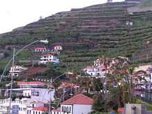 An example of the hilly terrain heavily terraced above Camara de Lobos, in this case most of it is planted with bananas |