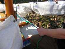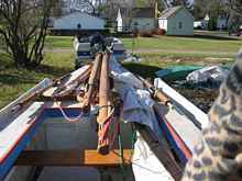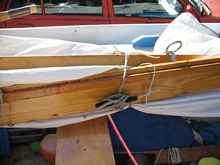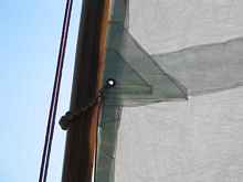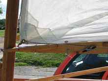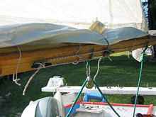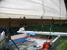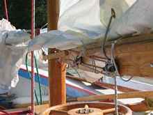 couple sail ties around the sail, boom and gaff, the re-hoist
