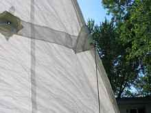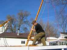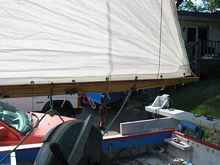 with the halyards. Or brail up to the mast in a calm. Losing the