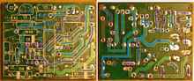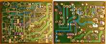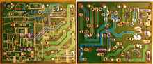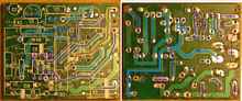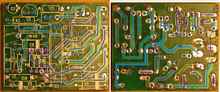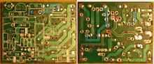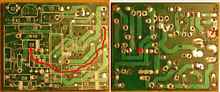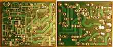 Here’s the clean PCB, front and back, and the back is reversed so it’s like we’re using our X-ray vision and looking through the top. (Otherwise we would have to mentally do a mirror image, and that is no fun at all.) Components were in the empty holes, but the filled-in holes always were filled in and may as well stay that way.