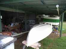 Beside the Micro, a twelve foot lapstrake (clinker) sailing dinghy