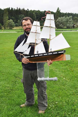 Phillip Artweger is a pilot/aircraft technician of Pink Aviation Services flying Short Brothers SC7 Skyvan STOL aircraft used by skyjumpers. Resident in Klatovy in the Czech Republic he has done model aircraft modeling and flying as well as RC model helicopters, moving about a year and a half ago into RC square-rigged ships. His model of the 1842 USN Somers built in 1:51 scale with an overall length of 950mm (3’2”) was entirely scratchbuilt from drawings in Howard Chapelle’s book History of American Sailing Ships and is without hesitation, a really beautiful little boat.