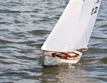 Most of us when we part with a model sailboat, whether it is sold, or given away, usually years after (particularly if we move to another part of the country or alternatively if the new owner does so) there is a natural tendency from time to time to cast ones mind back in fond recall of good times spent sailing that model. It began on a drizzly Thursday when old Warren Hastings turned up at our Auckland sailing venue and called me over to his car, showed me a sloop on the back seat which he took out and laid in my outstretched arms for me to have a look at. I did that and ten or so minutes later I was still standing with it waiting for Warren to take it from me. “Hey, very unusual ! ( I said ) but where do you want me to put it (to which he replied) “It’s yours! Put it in your car!”