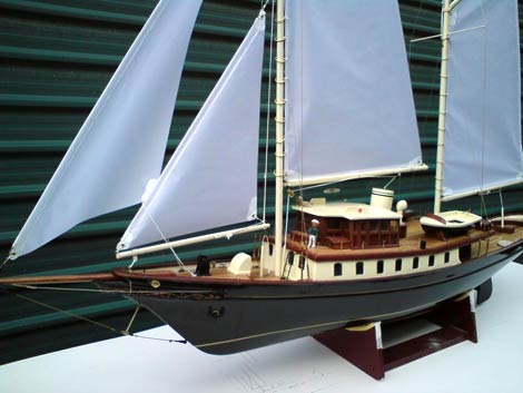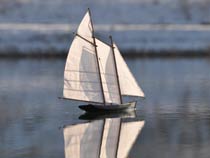 The idea for my challenge actually started while seated one wet New Zealand Winter morning on our `porcelain pony’ (well, many people get their best ideas in the loo!), that of wondering just how small a model schooner could be made to incorporate radio control. I made it as easy as possible in that the entries could be scratchbuilt or kit-adapted and aware of the ingenuity of some keen modelers, I envisaged that an eight or nine inch length on deck model would be about the limit, in other words a 12” Footy would just not be competitive. Was I surprised? Was I ever!