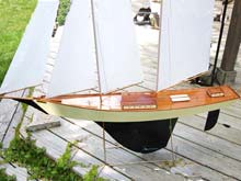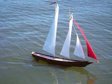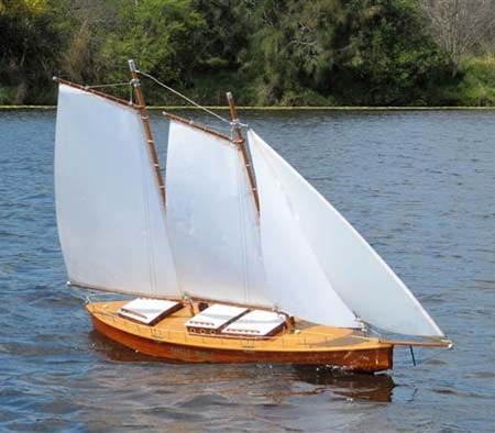 Cost of the T47 schooner kit is US$425.OO `There is nothing like a schooner,’ In Popular Science magazine, July 1934 issue an item was included of a new model sailboat with a three-vaned spinning cone in place of sails which the inventor hoped would result in the craft being able to steer always directly into the wind. On full sized boats the vanes made of lighter wood and fibre construction would reduce the necessity for tacking and his `sails’ would give three times as much propelling force as those of canvas. It seems that the idea was never successful for tacking is still necessary.