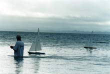 Above sails Aucklander, Keith _(will advise surname) new schooner Tomahawk, built this year by the owner simply because he `always liked schooners!’. A member of the Scale Marine Modellers, he has already built and regularly sails a Starlet with the Ancient Mariners at Onepoto lake on Auckland,