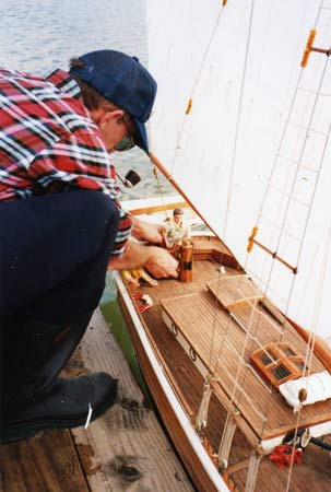 Rex Cotterell prepares his R Tucker Thompson for a sail