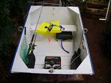 Also, an anchor wheel wind set-up could be another idea since there is little room to move about. Because the seat is located at the transom, end weight distribution needs to be personalized to the individual. To bring the bow down I put my battery for the electric trolling motor up front to balance out the weight distribution.