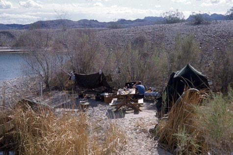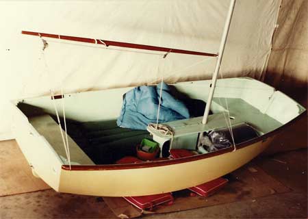 It was not intended as a camping cruiser, but I found that with the board and rudder laid alongside the CB case, plus air mattresses, it made comfortable bunks for two, much better than sleeping on the beach. With a suitable boom tent it could be a snug retreat. If I planned serious camp cruising I might make plywood floorboards, which could be supported at seat level to make a sleeping platform.