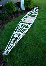 The new project, a SeaTour 15 EXP, has a wooden frame that will be covered with a 12oz Nylon saturated with urethane. I have just completed the frame and am about to start laminating the cockpit coaming.