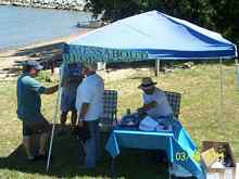 Eric Hughes slept aboard his boat, joined by Steve Kaba Friday night; assisted by Bob Crifasi, the three of them provided hot dogs with all the fixins. |