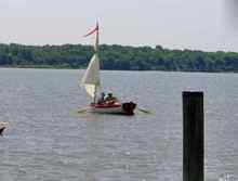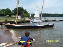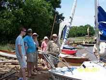 Kids played at the waters edge, families picnicked on the grassy lawn. If there was a "down" side to it all, it's simply that there was too much of interest for the hours in the day. It took till late afternoon to get my new sprit mainsail rigged. I would have liked to see every boat and ask questions ... maybe invite myself aboard. Folks were readily agreeable ... not enough time!