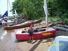 It should be noted that a couple skippers came without boats to take in the possibilities for next year. Karissa Hendershot will be finishing up restoration of her classic Lightening; Susan Hawkes hopes to have her "little rehab project ", a Skimmar Sea Gull, done too. She did get on the water with Ted K. rowing.